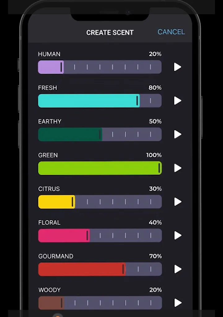 而芬美意公司(Firmenich)则同时采用上述两种方式。 一方面,她与加拿大智能扩香公司Airzai合作,双方将利用增强现实的创作方法,共同打造激发用户情感的香氛。芬美意将利用其AI香水产品,而Airzai将继续通过先进技术和机器学习,推动硬件、软件和固件的开发。Airzai公司于2019年底发布“Aroma”AI扩香机,号称“全球最智能的扩香机”。Aroma扩香机应用了AI和机器学习等技术,采用超声波圆片雾化技术,实现无火、无水、无噪音,香气释放强度可自主调节,机器内置传感器,搭配手机应用可根据环境变化自动切换香氛,而且还有语音唤醒、香氛余量监测等功能。